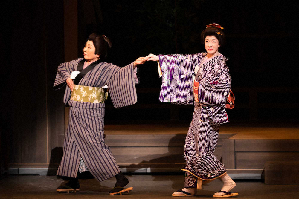 息ぴったりの演技を披露する泉ピン子(左)と坂本冬美