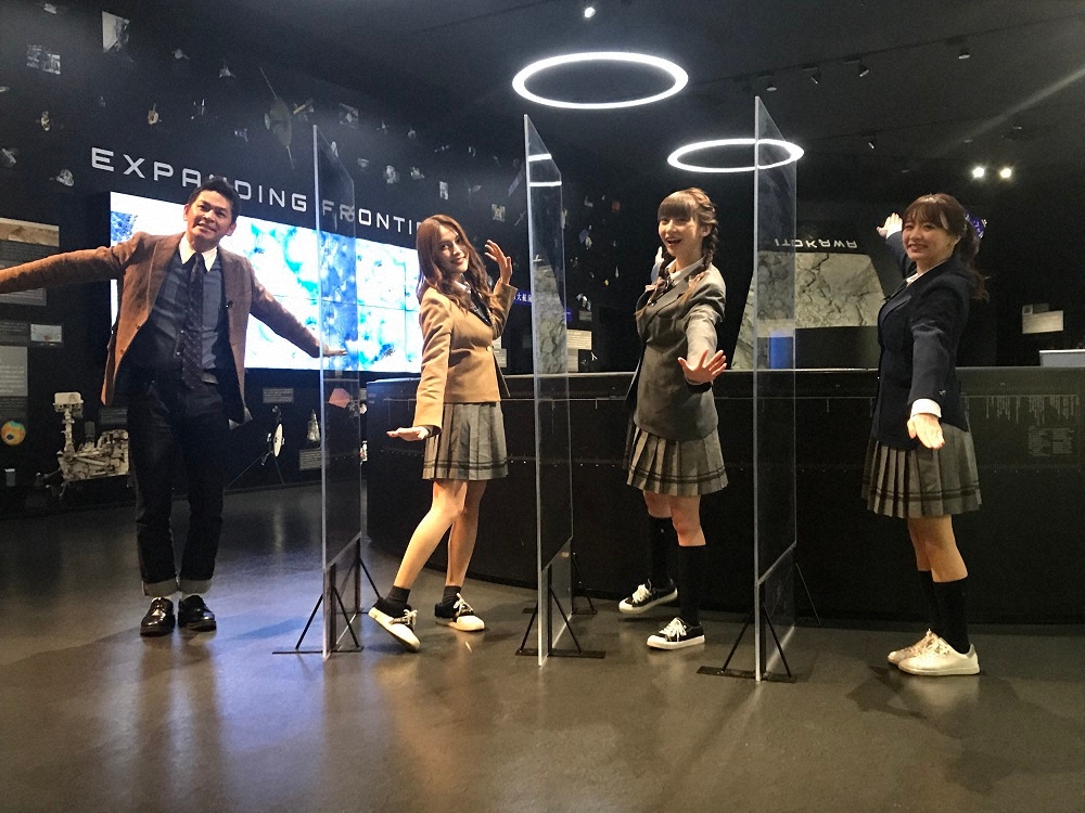 「世界一役に立つ!大人の社会科見学」で探査機「はやぶさ2」の“聖地”を巡る(左から)岡田圭右、入山杏奈、荻野由佳、森香澄アナウンサー(C)テレビ東京