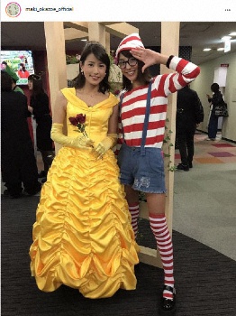 フリーアナウンサーの岡副麻希(28)が4日、自身のインスタグラムを更新。この日結婚を発表したフジテレビ・永島優美アナウンサー(29)を祝福し、永島アナとのコスプレ衣装での2ショットを披露した。