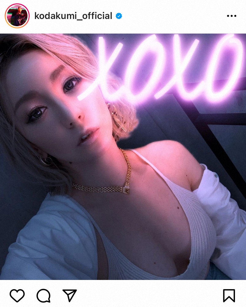 文章にはカメラの絵文字が3つだけで、ハッシュタグには「#kodakumi」「#倖田來未」と添えた。写真では上着がはだけて、肩を露出し、谷間が露わになっている超セクシーな姿を披露した。