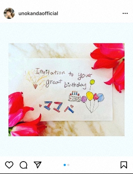 ハッシュタグでも嬉しい気持ちが爆発。「嬉しいインヴィテーション」「嬉し過ぎる」「娘からのインヴィテーションカード」「1週間前のインヴィテーション」「1週間前のお誘い」「嬉しいな」「ワクワク」「わくわく」「もうすぐお誕生日」「もうすぐ46歳」などと添えた。
