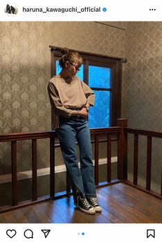 女優の川口春奈(26)が23日までに自身のインスタグラムを更新。お団子ヘア&黒縁メガネ姿を公開した。