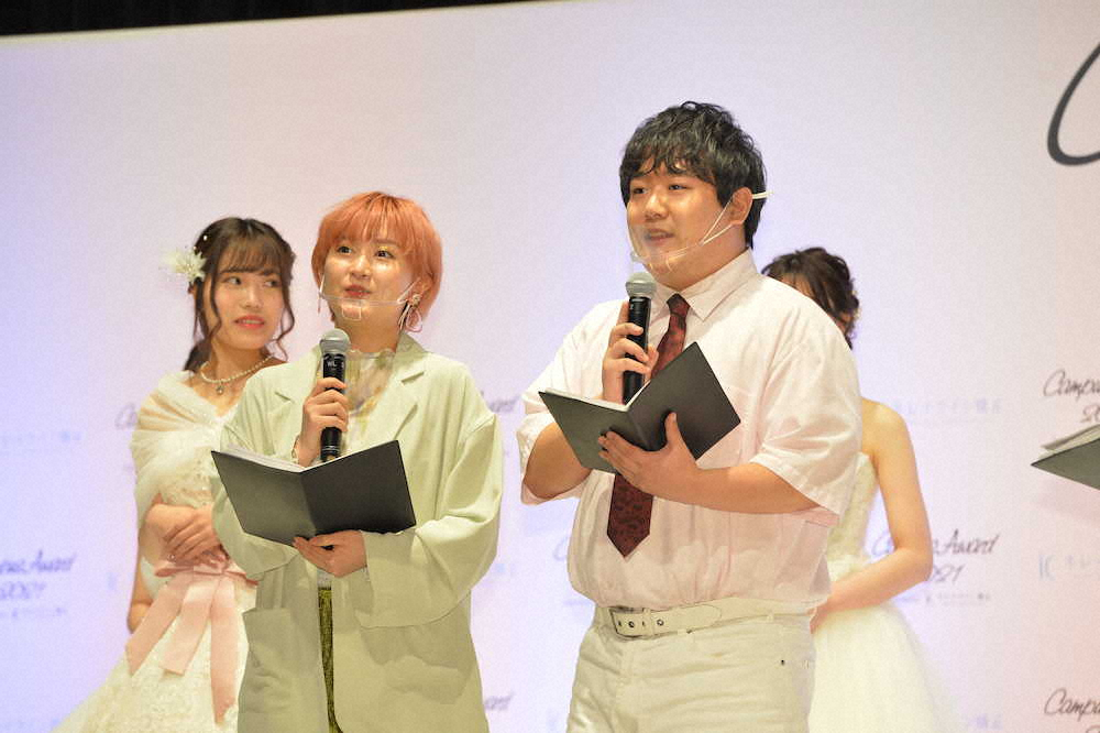 ファイナリストたちはウエディングドレス姿で登壇した。プレゼンターを務めたサーヤ(25)が「自信のある女性はきれいですね。自信のない男性が隣にいたので、本当にまぶしく見えました」と相方のニシダ(26)をいじると、ニシダは「根拠のない自信しかありません」と開き直ってコメント。「まつげ、すごい長いんです」と数少ない?長所を口にするニシダに、サーヤは「アフリカゾウくらいあるんです」と独特の表現で笑わせた。