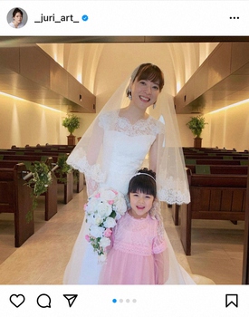 「朝顔を応援してくださった皆様ありがとうございました。そしてこれからも皆様の中でふとした瞬間に思い出してそっと力になれたら嬉しいです」と投稿を締めくくり、自身の娘役として共演した子役・加藤柚凪(ゆずな=5)との2ショット写真をアップ。上野はウエディングドレス、加藤はピンクのドレスを着用している。