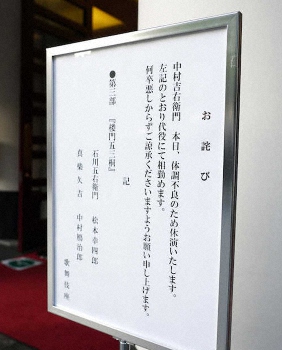 吉右衛門は28日、歌舞伎座での「三月大歌舞伎」第3部に出演していた。舞台では変わった様子は見受けられなかったが、別の歌舞伎関係者によると「何日か前から体調が悪かったように見えました」という。