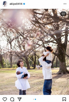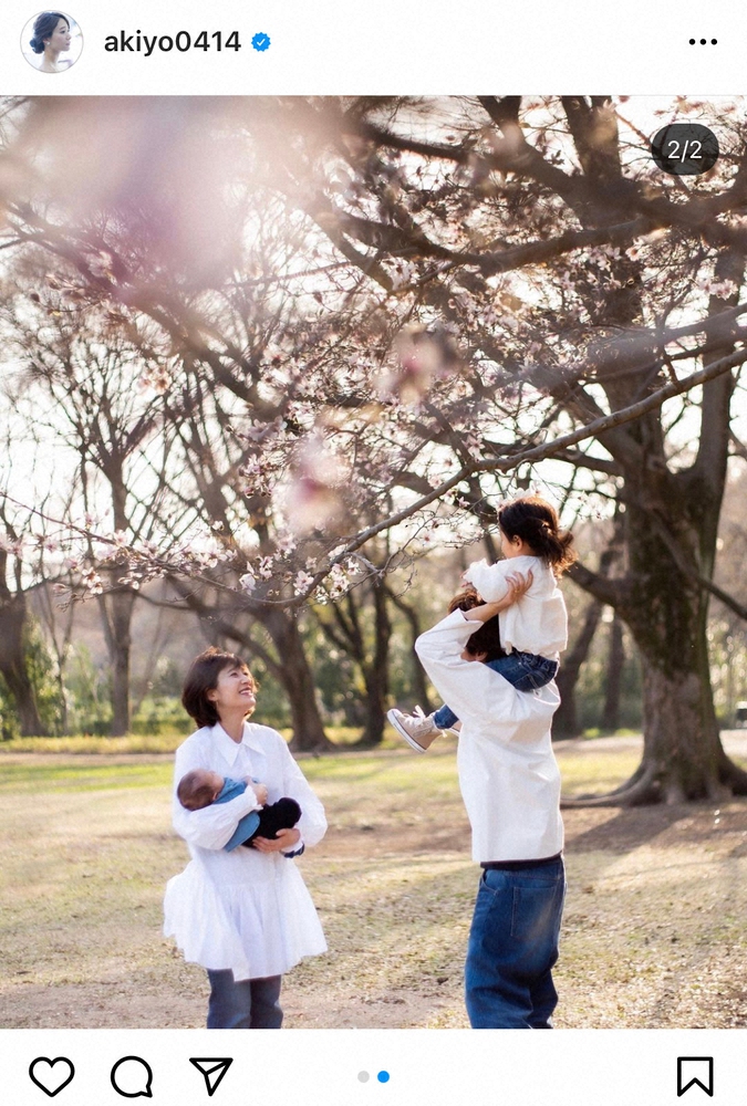 【画像・写真】吉田明世アナ 桜の下で家族4人幸せショット “新生活”に「ドキドキ、ワクワク」