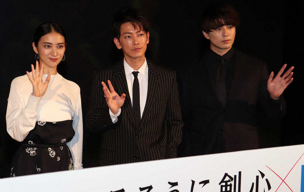 共演の武井咲(27)、新田真剣佑(24)、スタッフとともにIMAX版を観賞した佐藤は「見るのは3、4回目だけれど、今日が一番グッときた。今後はIMAX、一択ですね」と満足げ。