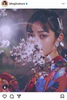 「名前に因んで桜と撮りました」とつづり、カラフルな花柄のトップス姿で桜とともに撮影したショットを公開。ライトを使った幻想的なカットになっている。