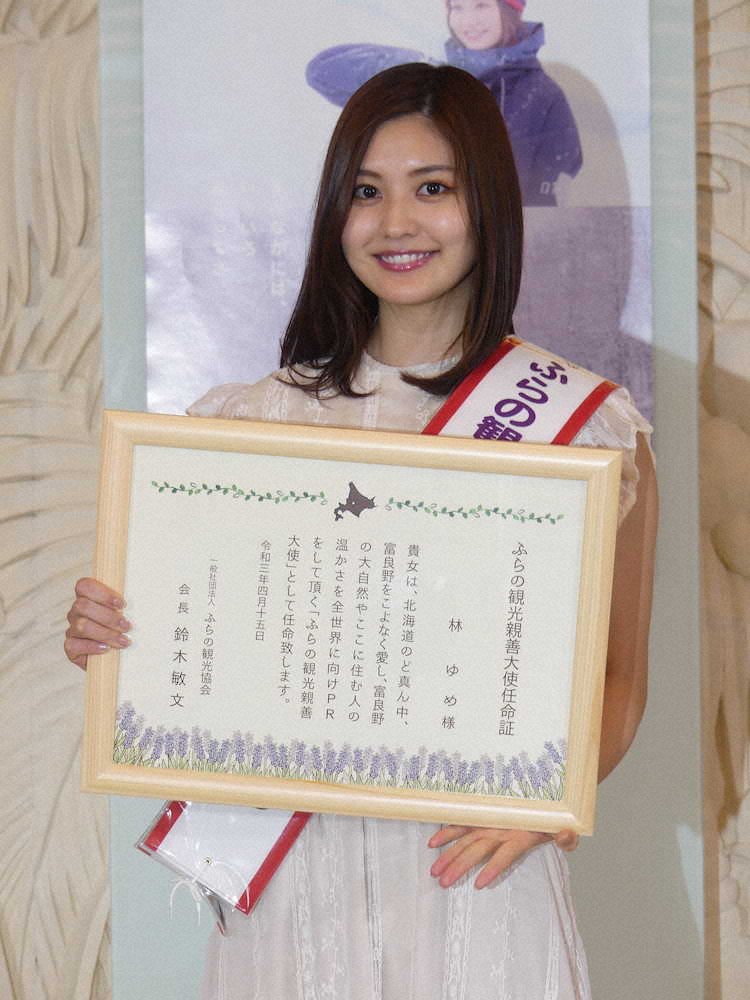 グラビアアイドルの林ゆめ(25)が出身地の北海道富良野市から「ふらの観光親善大使」に任命され、15日、都内で委嘱式に臨んだ。