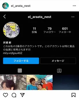 井浦の公式アカウントは「el_arata_nest」だが、微妙に違う「el_araata_nest」というアカウントの画像を張りつけ、「このアカウントは成りすましです プロフィール写真は一緒ですがアカウント名はよく見ると el_araata_nest ......あらーたかよ」とツッコミ。「自分は2番目のアカウントはないですし 商品の抽選などしていません」とした上で「araataの方から申請やプレゼント当たりました的なメッセージきても フォローしないで下さい直ぐにブロックで!フォローしてしまっている皆さん早急にフォローを外してブロックして下さい!被害が起きてないことを願います 皆さんお気をつけ下さい」と注意を呼びかけた。