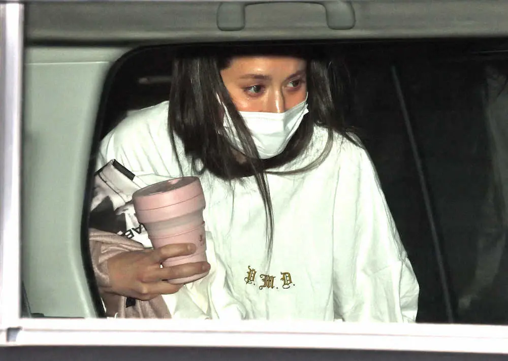 無言で車に乗り込むマリエ(撮影・岸 良祐)