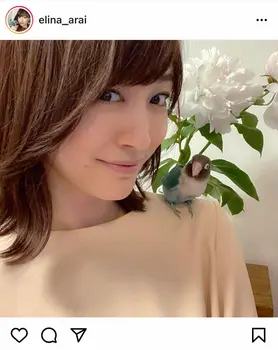 日頃からSNSでラピスとの戯れを公開している新井。今回は「本命と…ラピスもわたしも早く寝なければ。おやすみなさい~」とつづり、左肩にラピスを乗せた自撮り写真をアップ。ハッシュタグでは「#ラピス#ブルーボタンインコ#bird」と記した。