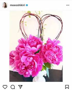 プロ野球・楽天の涌井秀章投手(34)の妻で、モデルの押切もえ(41)が25日、自身のインスタグラムを更新。リビングに飾っているという、鮮やかなピンク色の花の写真を公開した。