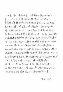 同社の代表取締役・廣瀬洋一郎氏も直筆文書で「過日 酒井法子本人より50歳を機に残りの芸能生活を自分らしく挑戦して行きたいと退所の申し出が有りました」「復帰以来8年に渡り苦楽を共に歩んで参りましたが 本人の意志を尊重することと致しました」と経緯を説明。「この先どの様なことが有りましても応援 サポートをして行く所存です」などとした。