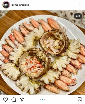 歌手の工藤静香(51)が4日、自身のインスタグラムを更新し、見事にさばいて盛り付けられた毛ガニを披露した。