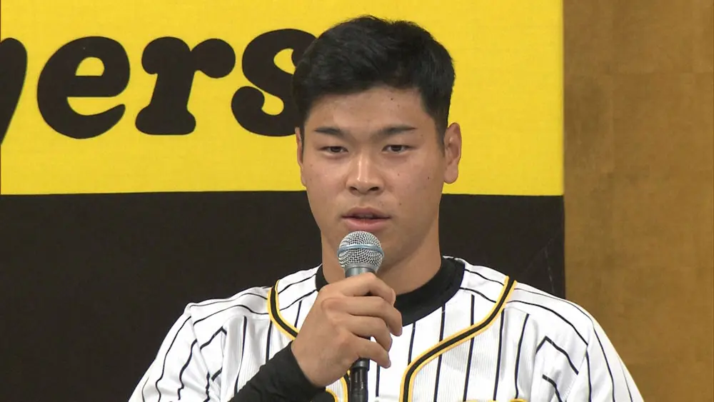 昨年の10月26日に行われたプロ野球ドラフト会議で、オリックス、阪神、ソフトバンク、巨人の4球団から1位指名を受けた佐藤輝。抽選の末、阪神がクジを引き当てた。鳴り物入りで入団したスラッガーは開幕から評価以上の活躍を見せた。