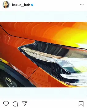 この日、代車を初めて手洗いで洗車したことを明かし、ライトの部分に「KICKS」と文字が入っていることを発見。「こんなところにオシャレですよね」とコメントし、洗車をした際には「シーマは届くけどkicksは車高が高いので、屋根は脚立に乗って拭きました」と両車の違いを比較し、つづった。