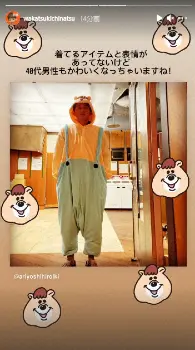 「若槻千夏大社長ありがとうございます」とつづり、タレントの若槻千夏(36)がプロデュースしたキャラクター「クマタン」の着ぐるみ姿を投稿。これに対し、若槻もインスタグラムのストーリーズの機能で、有吉の着ぐるみ姿の写真とともに、「着てるアイテムと表情があってないけど、40代男性もかわいくなっちゃいますね!」とつづった。