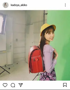 テレビ東京の角谷暁子アナウンサー(26)が21日、自身のインスタグラムを更新。黄色い通学帽子に赤いランドセルを背負った姿を公開した。