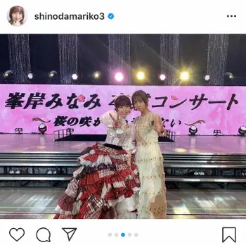 女優の篠田麻里子(35)が23日までに自身のインスタグラムを更新。AKB48峯岸みなみ(28)の卒業コンサートに参加した際の様子を公開した。