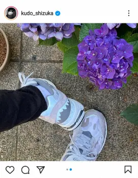 また2枚目にはスニーカーを履いた足元とあじさいのショットをアップ。「そしてかなり暑く頭がモワッとしていたせいか、よりによって今日下ろし立ての@bape_japanのスニーカーで踏んでしまったのです 自宅に着き洗えば済むし何の問題もないのですが、下ろし立てに限って『え?踏む?私踏んだ笑笑笑笑』と、1人で笑ってしまいました」と記し、「プーを置き去りにする飼い主の皆さま、ワンちゃんのプーは必ず拾って下さい~ 運がついたぞ! 笑笑」と犬のフンを踏んでしまったことを明かし、マナー向上を訴えた。