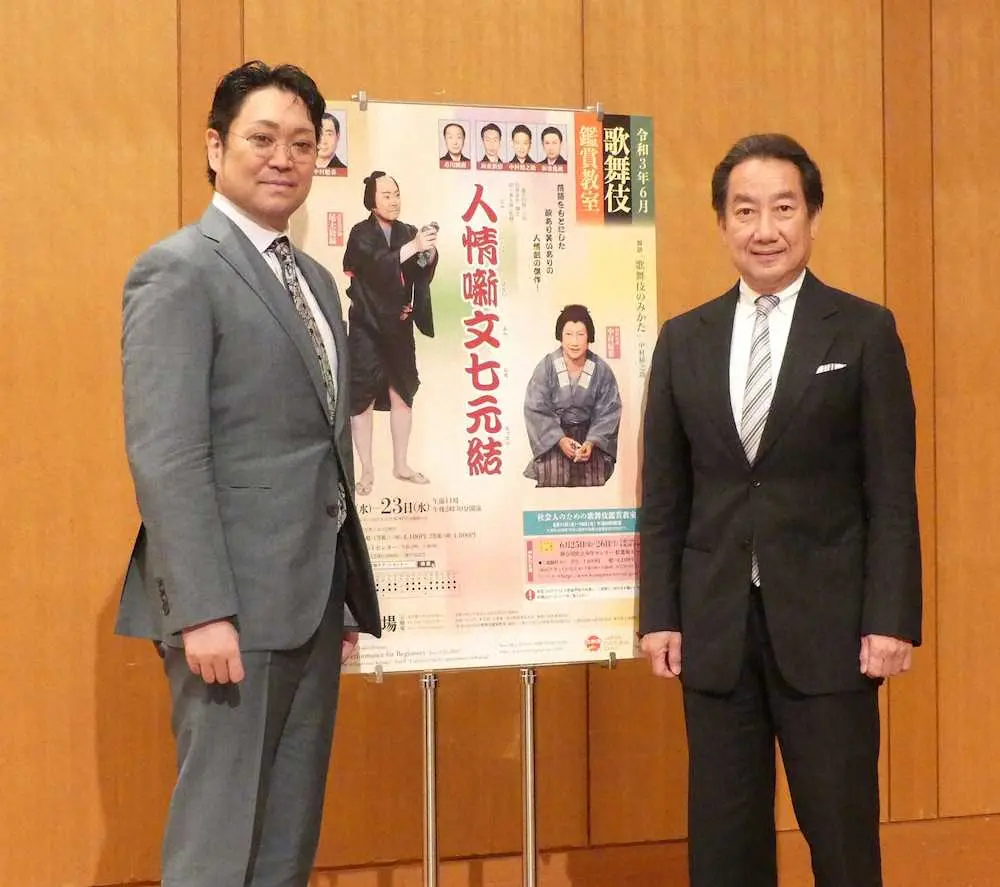歌舞伎俳優の中村扇雀(60)と尾上松緑(46)が24日、都内で歌舞伎鑑賞教室「人情噺文七元結」(東京・国立劇場、6月2~23日)の取材会に出席した。