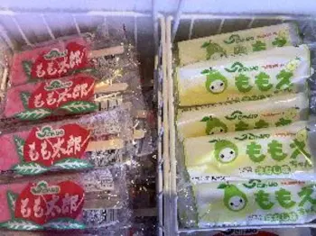 まず商品名の由来ですが、もともと桃の形をした「桃型」という木型で作られた氷菓に割り箸を刺して、お祭りの露店で売られていたものをセイヒョー(新潟市)が商品化したのだそうです。ただ、不思議だなとずっと思っているのは味がイチゴ味ってところです。「もも」太郎なのに(笑い)。