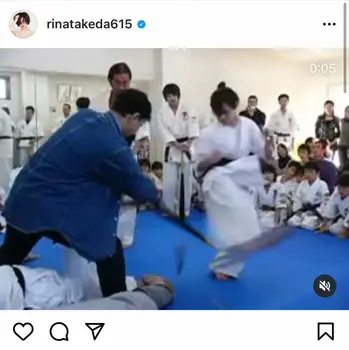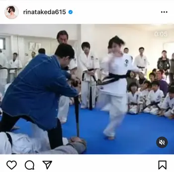 この日は「中学時代の動画が頂きました」(原文まま)とつづり、空手着姿で、男性が持つ木製バットを右足の蹴りで真っ2つに折る動画をアップ。折れた瞬間には、周りの生徒たちから大きな拍手があがっている。最後は「久々に道場で練習したいなぁ」とつづって結んだ。