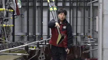 ボートは全身を使い休むことなく全力で漕ぎ続ける過酷な競技。1日5000キロカロリーを摂取しないと、体の維持ができないほど。8人の選手で漕ぐ、ボート種目「エイト」では漕ぎ手が持つオールは1本、片側4本ずつのオールで強く引くパワーが推進力の源。中には200キロのバーベルを引き上げる選手もいる。