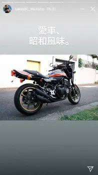 つるのは愛車である、川崎重工業が製造販売をしている大型二輪車の、カワサキ「Z900RS」の写真を投稿。これに対して、「愛車、昭和風味」とコメントした。