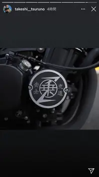 続けて白で、「KAWASAKI」と文字の入った黒い車体や、「乗」の漢字がデザインされた、マークが取り付けられたアップの写真も披露した。このマークには「交通安全」という言葉が添えられている。