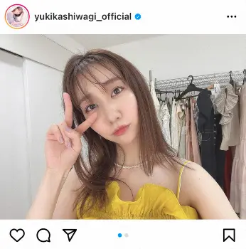 柏木は「自撮りぴーす」とつづり、黄色の衣装を着てピースする写真を投稿した。