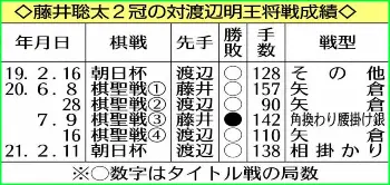 藤井が昨年、タイトル初挑戦奪取した棋聖戦。渡辺は当時「終盤力が違い過ぎる」と敗因を語った。それを補うすべとして採用するとみるのが、昨年唯一勝った第3局での綿密な準備。対局中の読みではないという点で、渡辺自らが語った「弱者の戦い方」だ。