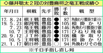 「形勢、持ち時間でもリードして終盤に入る。藤井さんが勝負手を連発しても時間を残せば乗り切れます」。年明けからのトリプル防衛戦を先月末、全て防衛し「棋聖戦に専念できるのは有利な条件です」と谷川。一方、豊島とは初対戦から6連敗後、1勝を返した。「1勝したことで自然体でいける。豊島さんはかなり危機感を抱いて臨むのでは?」とした。