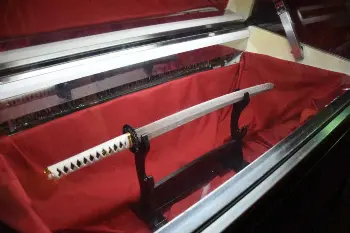 今も多くの刀鍛冶が住む地域と井村屋が協力し「日本刀アイス」を制作。約65センチの刀身に成型して柄を加えた全長約87センチのあずきバーが作られた。
