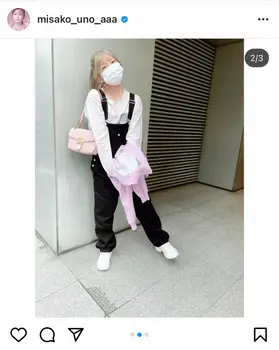 「合間にカフェラテ買いに。オーバーオール×ピンクにきゅん」とつづり、黒のオーバーオールに白のロングのTシャツを合わせ、ピンクのバッグを肩からかけた全身ショットを投稿。「10代からやめられないコーデ」とお気に入りのコーデであることを明かした。
