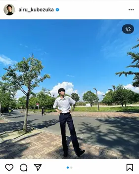 「昨日の夜は天気が荒れてたけど、今日はめっちゃいい天気で良かった」とつづり、白シャツに黒のパンツを合わせたショットを投稿。青空の下で、腰に手を当てクールにポーズを決めるている。