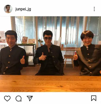実業家でホストのROLAND(28)が16日までにお笑いコンビ「ジャルジャル」後藤淳平(37)のインスタグラムに登場。角刈り、学ラン姿を披露した。