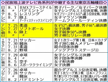 民放各局の五輪放送日程発表 テレ朝、メダルラッシュ期待できる3日間ゲット