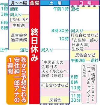 秋から予想される安住紳一郎アナの1週間 Photo by スポニチ TBS安住アナ、異例の“金休”シフト 過重労働防止で土日レギュラーと両立へ ギャラリーで見る この記事のフォト 2021年06月23日の画像一覧 もっと見る 2021年06月23日の画像をもっと見る