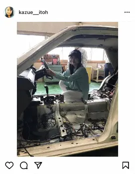 レストア中でシートもはがされ、配線もむき出しの状態の車内でハンドルを握る姿をアップ。「#y31シーマ レストア中のシーマの様子を工場に見に行きました」と記した。