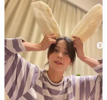 「実家にあるレインブーツを送ってもらいました。そしたら靴にコチラ↑が入ってたんですが…何かわかります?緩衝材かと思ったら…私の母『私がね~作ったヘチマ!!ほとんど食べたんだけどねー食べきれないのはスポンジにしたから風呂で体こすって!!』とのこと」などとつづり、ヘチマをうさぎの耳のように頭にくっつけた写真をアップした。