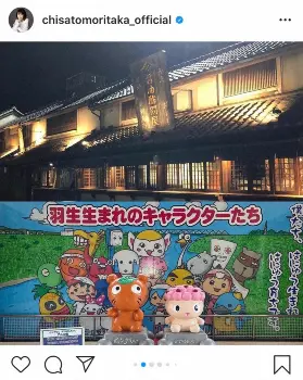埼玉県・羽生市でライブを行った森高。「森高千里『この街』TOUR 2020-22『埼玉羽生市産業文化ホール』終了しました!」と報告し、青いジャケットにゴールドのミニスカート、ニーハイブーツというステージ衣装姿で、鏡越しの全身ショットを披露。さらに、移動中に立ち寄ったと思われる羽生パーキングエリアにある建物や、キャラクターのオブジェなどをアップ。ステージ上でピンクのギターの隣に並び、笑顔を見せている私服姿も公開した。