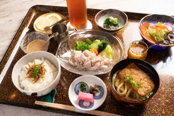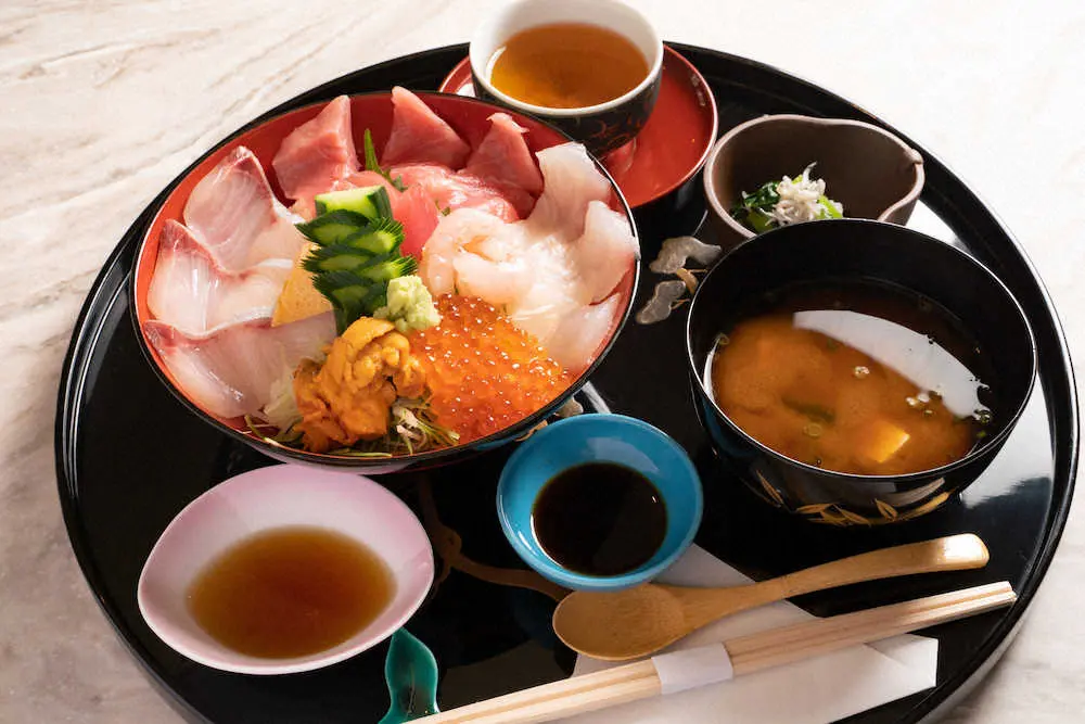 藤井聡太王位は「海鮮丼」を選択。飲み物はシンプルにお茶だけだった。豊島将之竜王の注文は「豚しゃぶときつねうどんセット」にサラダを加え、飲み物はアイスティー。会場の花月会館では両者の昼食とおやつを20~25日の期間限定で販売する。