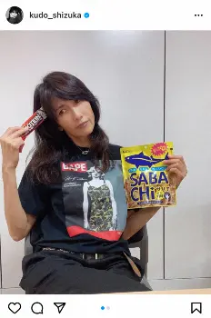 工藤静香 「スーパーで見かけると買ってしまいます」サバチップ片手にカジュアルコーデ披露