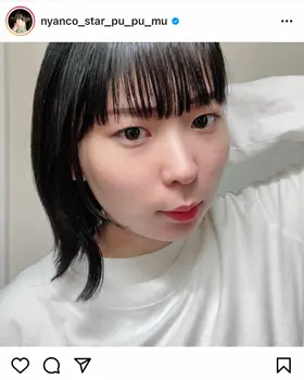 「白シャツの下に白シャツ着てる人」とつづり、ドアップでの自撮り写真を投稿。コメント通り、白シャツを2枚重ね着しており、左手を挙げたポーズを決めている。ハッシュタグでは「#見たことある人モノマネ#にゃんこスター#アンゴラ村長」と添えた。