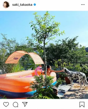 高岡は以前もこの屋上で過ごす様子を投稿しており、植物の横に寝そべる愛犬の写真と共に「屋上の緑たちがこんなに生茂ってきた。今日はダラダラ過ごすの」とコメントしていた。