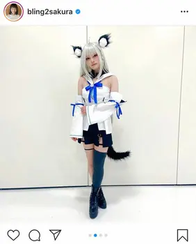 29日に放送された、日本テレビ「ぐるぐるナインティナイン」(木曜後7・56)の「ダレダレ?コスプレショー」に出演した自身は、「ぐるナイのコスプレ見てくださった方、ありがとうございました!」とコメントし、コスプレ全身ショットを披露。これはゲーム実況などを行う「白髪ケモミミ女子高校生」Vtuver・白上フブキの装いで、シルバーのウイッグや“ケモミミ”をつけて肩を大胆に露出したトップスなどを着用している。また、ミニスカートからは、ニーハイソックスを履いた美脚がすらりと伸びている。