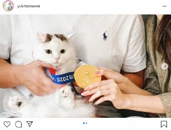 愛猫に金メダルをかけた画像を公開。「オリンピックが終わり数日経ちましたが、完全にオリンピックロス状態でございます(早くパラリンピックはじまらないかな…)」と書き出し、「テレビを通してとはいえ、同じ日本で開催されているんだ!という実感はやはりありましたし、今まで見てきた五輪以上にたくさんの感動、勇気、希望を様々な競技から頂きました」と記した。