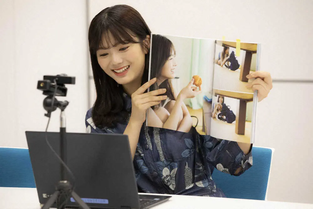 写真集は北海道・岩見沢と沖縄・石垣島で撮影。「最後の最後まで何1つ妥協することがなかった一冊。(自己採点は)100点満点中200点です」と大満足の様子だった。沖縄で撮影したサーターアンダギーを食べるカットでは、写真集を見せた同期メンバーの森田ひかる(20)に「人のかばんから芋盗んで食べてる写真よかったよ」と言われたことを明かし、笑いを誘った。